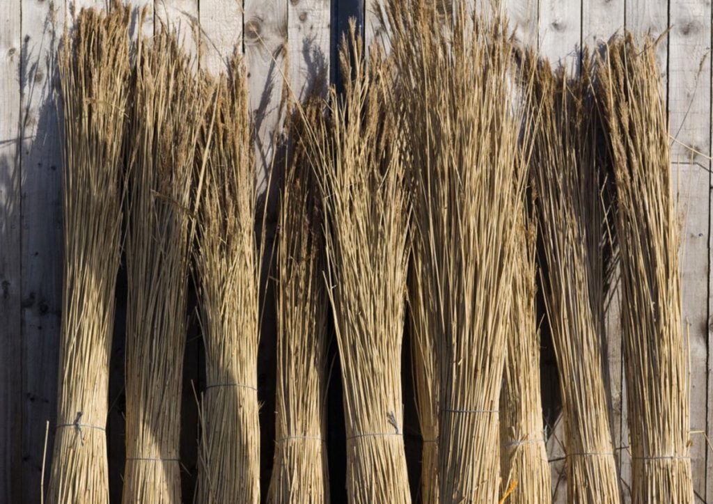 Not actually a reed, this is a refined form of wheat straw prepared for thatching. Fibres are combed to align and remove short pieces, making it easier to work with and resulting in a neat, articulate finish.